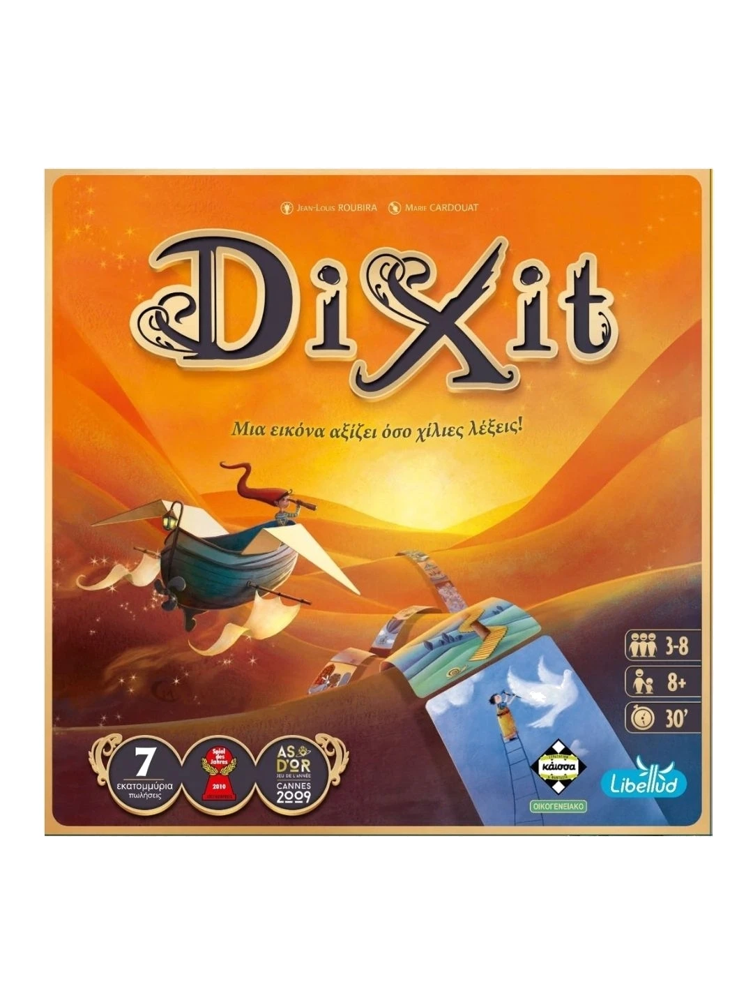 Πέντε εικόνες ανοίγουν. Έχουν όλες κάτι κοινό: μια αινιγματική πρόταση. Μια όμως από τις πέντε ανήκει στον αφηγητή. Οι παίκτες θα πρέπει να επιστρατεύσουν τη διορατικότητα και τη λογική τους για να τη βρούνε, αποφεύγοντας ταυτόχρονα τις παγίδες των συμπαικτών τους. Το Dixit είναι ένα ευχάριστο αλλά και συναρπαστικό παιχνίδι γεμάτο εκπλήξεις για την παρέα αλλά και όλη την οικογένεια.