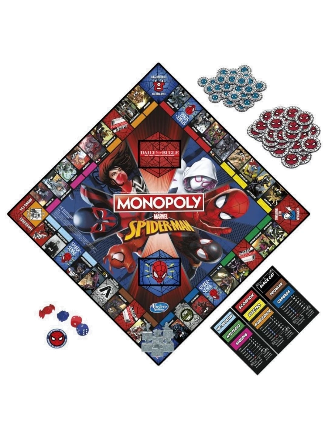 Ορμήστε στη δράση με τον ιστό του Spider-Man στην συναρπαστική εκδοχή της Monopoly: Marvel Spider-Man Edition. Είναι ένα διασκεδαστικό παιχνίδι όπου τα παιδιά οποία μπορούν να φανταστούν ότι προστατεύουν την πόλη της Νέας Υόρκης από τους Σούπερ-Κακούς. Σε αυτή την εκδοχή, τα πιόνια Monopoly αναπαριστούν 6 ήρωες από το Σύμπαν του Spider-Man. Οι παίκτες μπορούν να πάρουν το μετρό για να κόψουν δρόμο, να ξεκλειδώσουν μια μοναδική ικανότητα του Σούπερ-Ήρωά τους και να χρησιμοποιήσουν τις κάρτες της εφημερίδας Daily Bugle για να καταστρώσουν σχέδια ενάντια στους αντιπάλους τους.