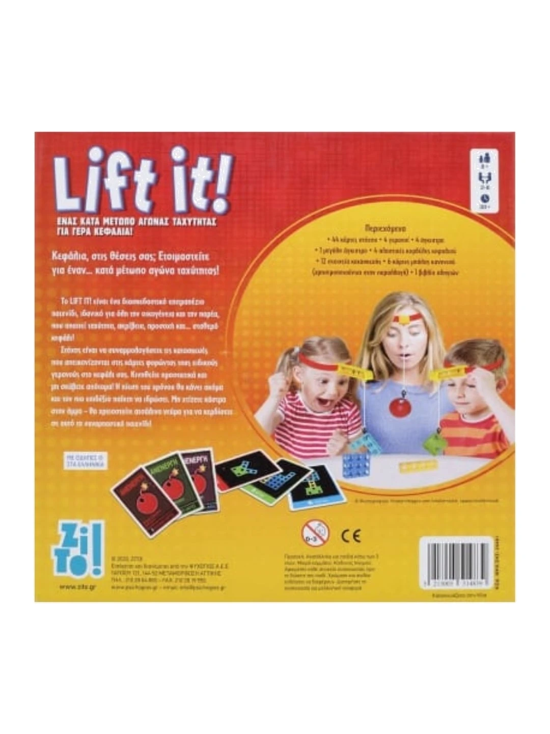 Το LIFT IT! είναι ένα διασκεδαστικό επιτραπέζιο παιχνίδι, ιδανικό για όλη την οικογένεια και την παρέα, που απαιτεί ταχύτητα, ακρίβεια, προσοχή και… σταθερό κεφάλι!